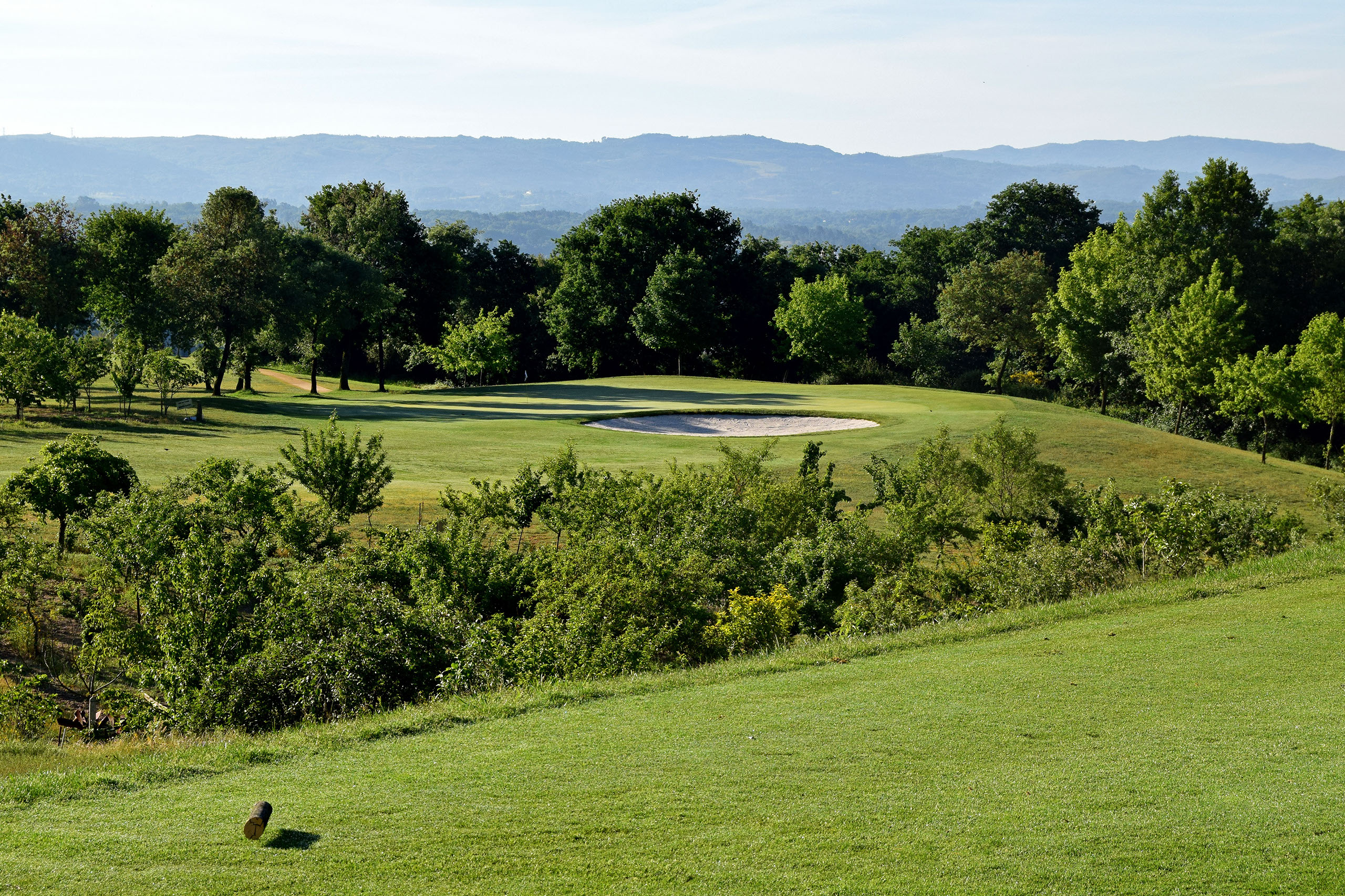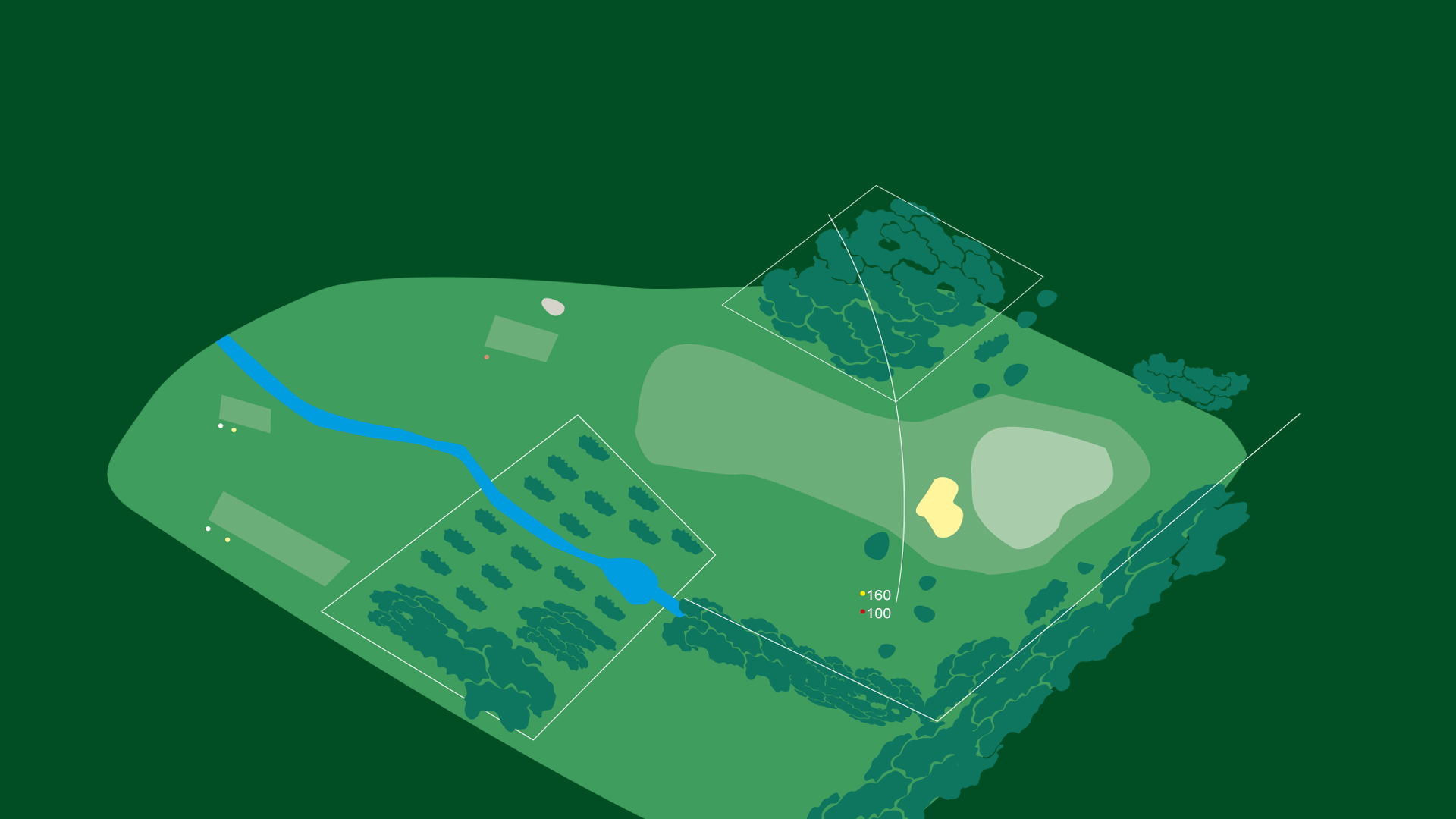 Largo par 3 con fuera de límites que compromete la salida. Amplio green protegido por un bunker.