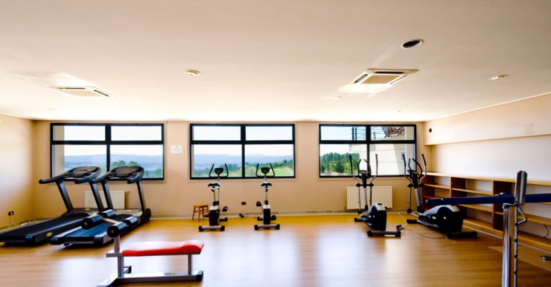 Sala climatizada que cuenta con bicicletas estáticas, cintas para correr, máquinas de spinning, plataforma vibratoria...