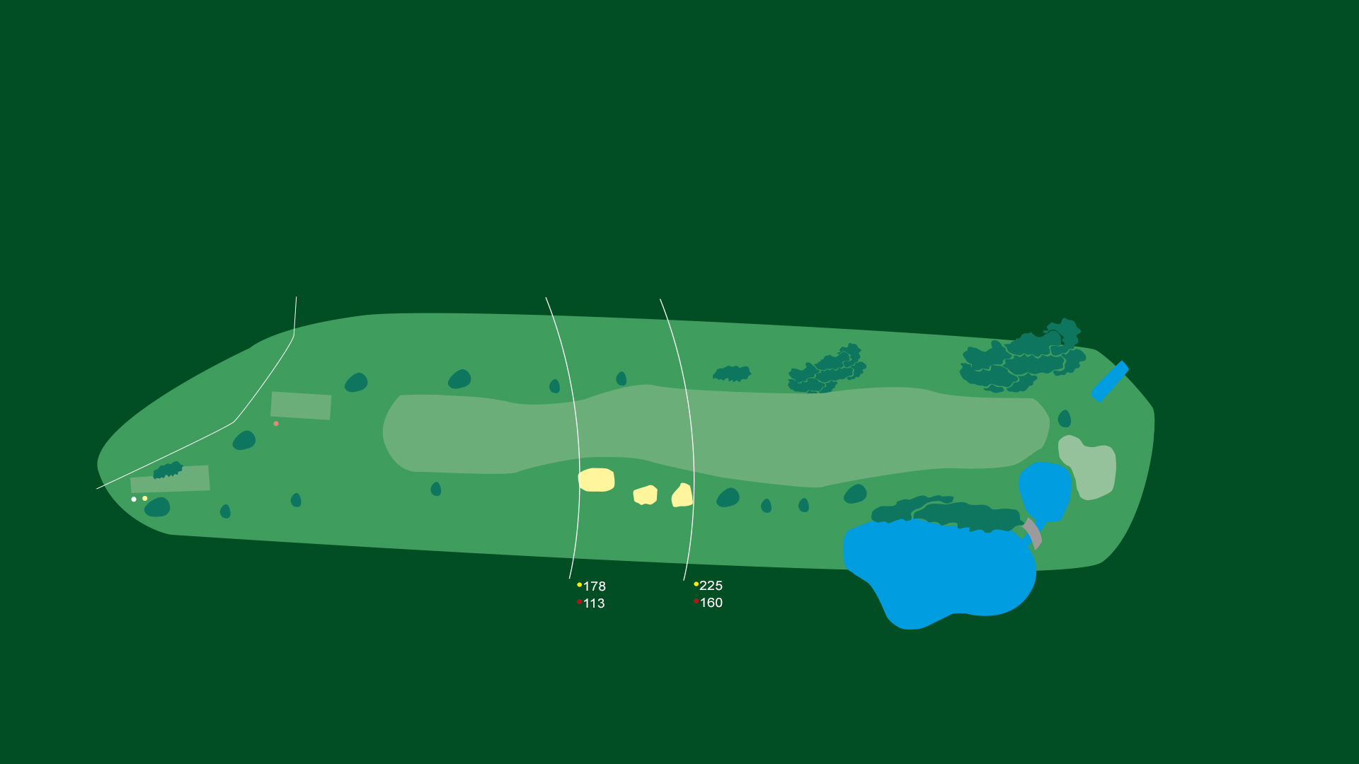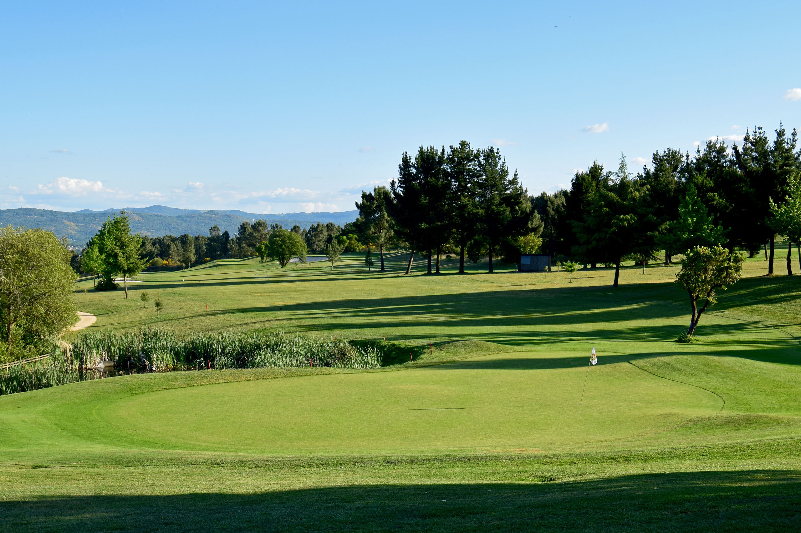 Largo y difícil hoyo. Conviene ganar distancia en la salida para facilitar el golpe a un green protegido por un lago.