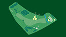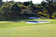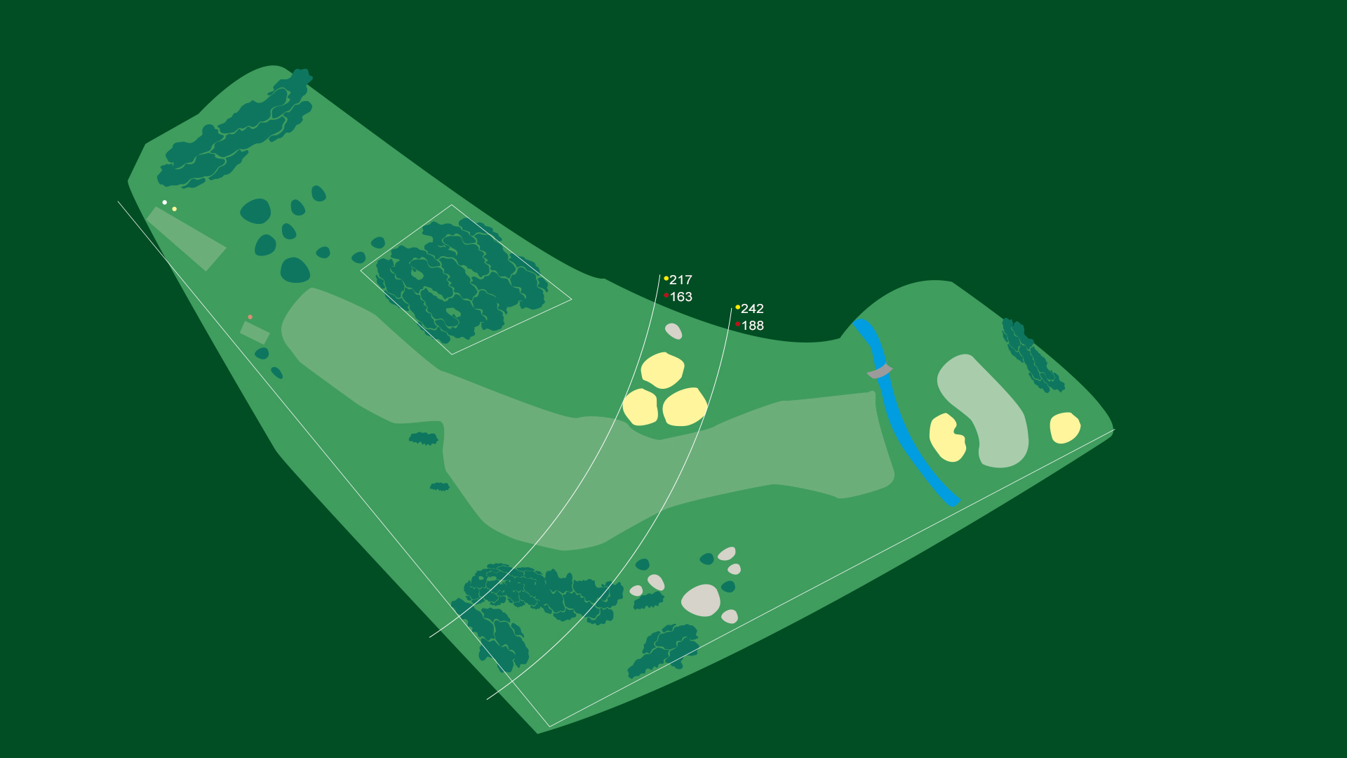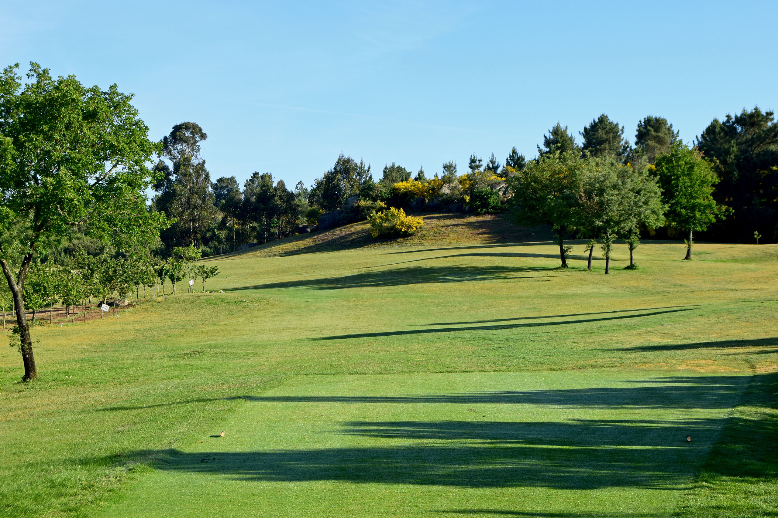 Calle con dogleg a la izquierda y tres bunkers que complican la salida. Green amplio protegido por dos bunkers y un regato.