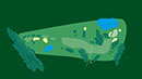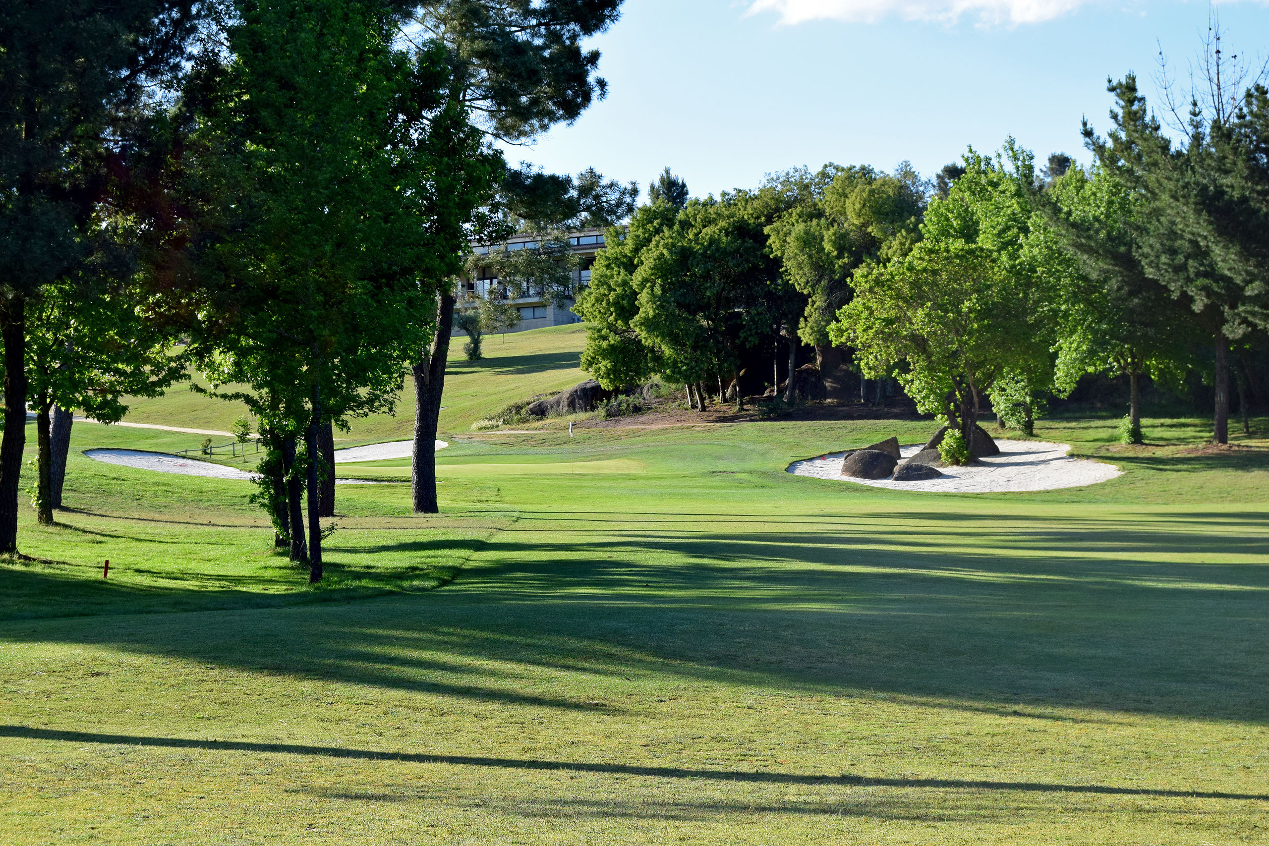 Calle con dogleg a la izquierda. Es necesaria una salida larga para atacar el green protegido por dos bunkers y árboles. Green con dos plataformas.