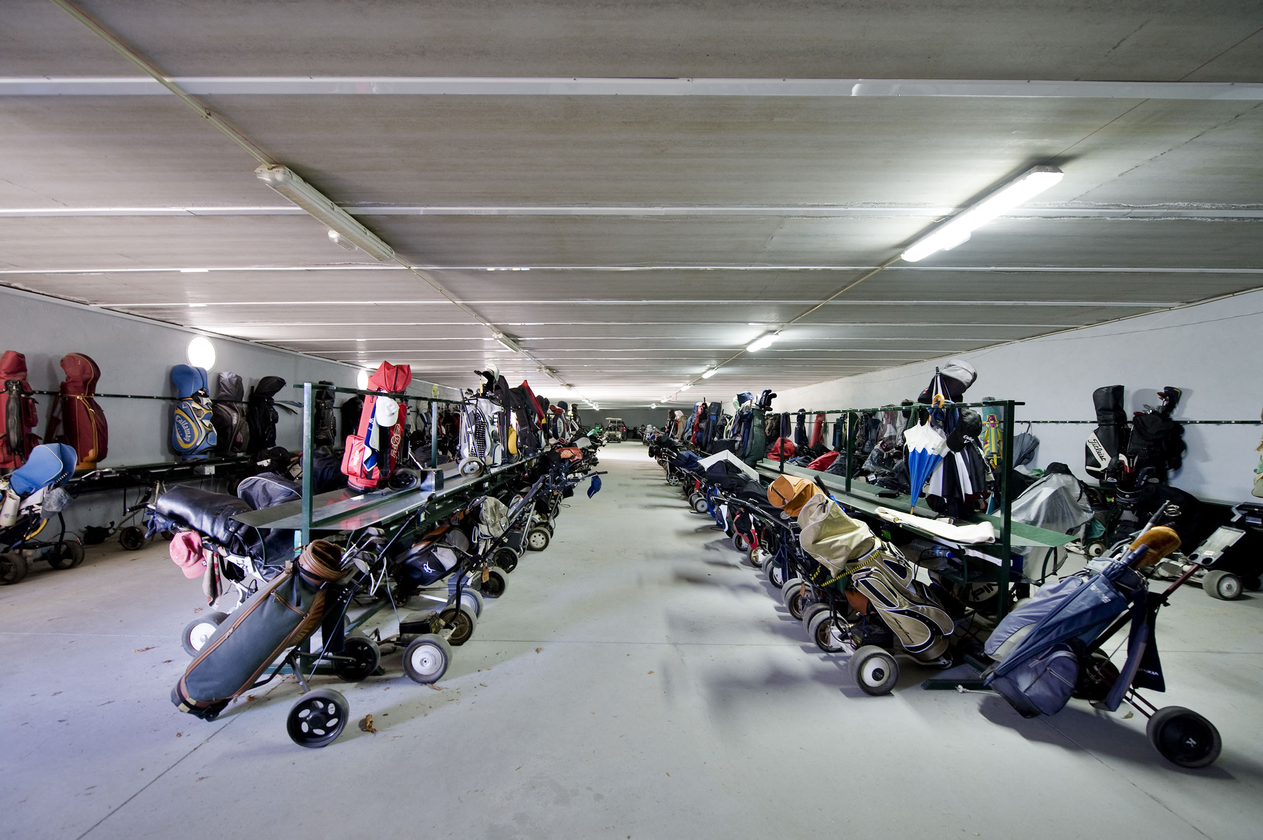 dispone de estanterías para bolsas, plazas para carros eléctricos y para buggies.