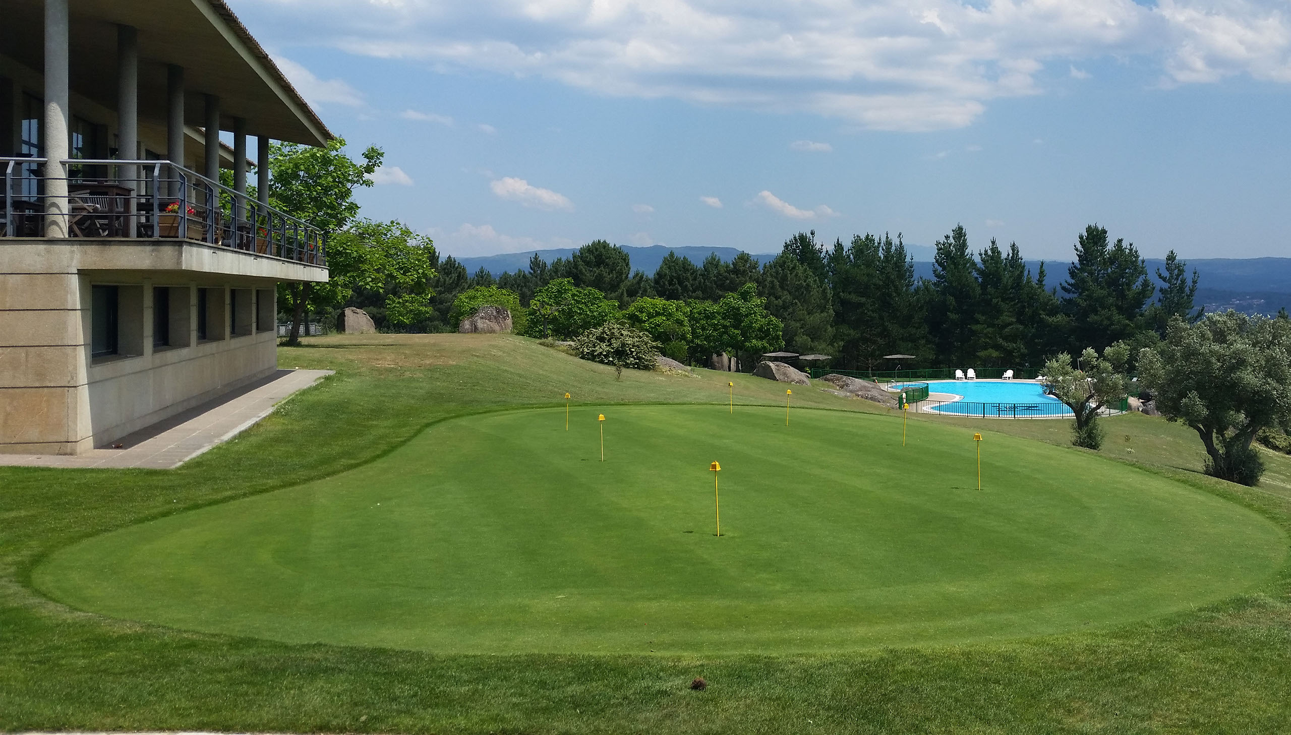 delante de la casa club y otro más grande para la práctica del putt y approach al lado del green del hoyo 18.